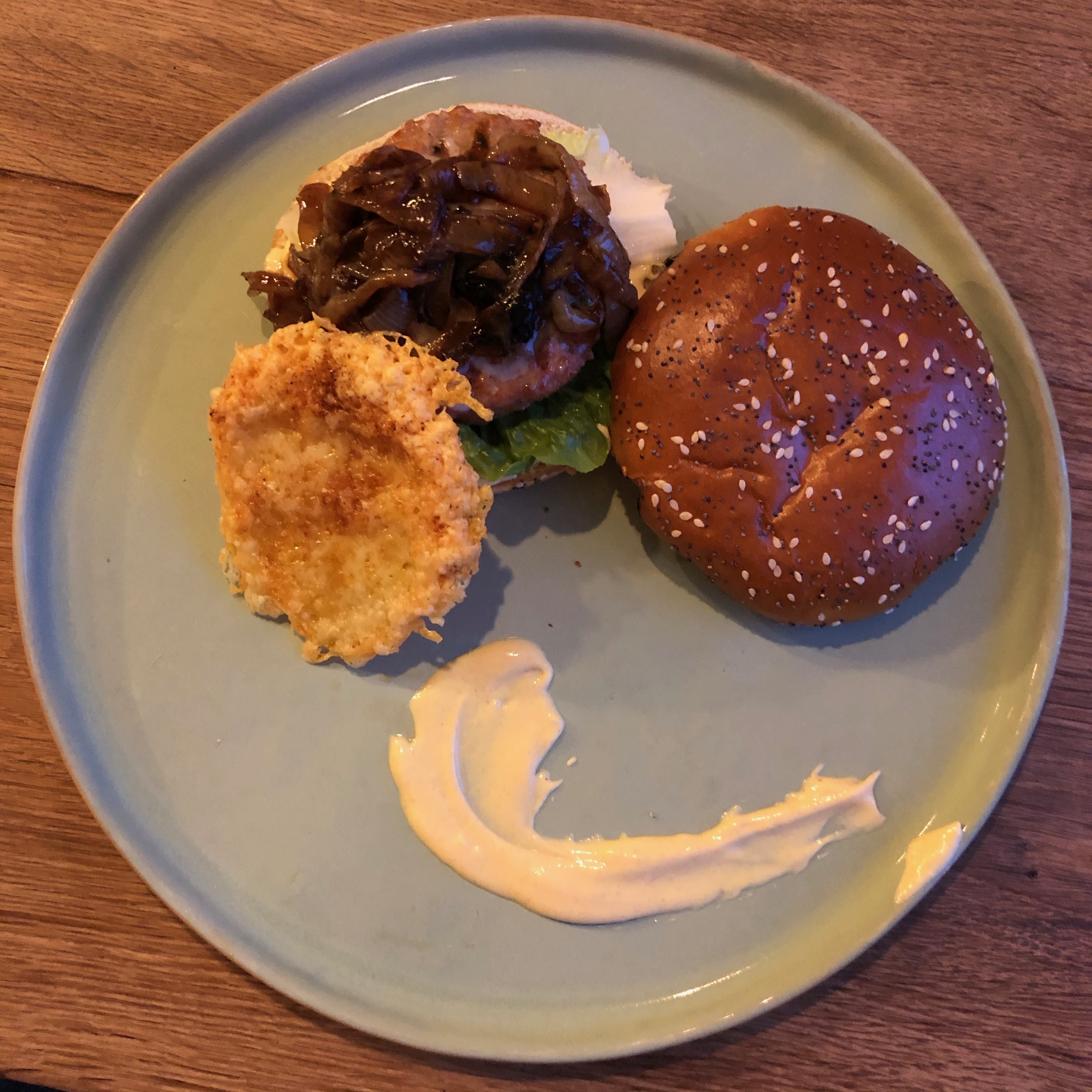 - Een prachtige dry-aged Rubia Gallega rib-eye, dieprood en met een dikke vetrand. Heerlijk! En voor de winter kruidige pompoen erbij, verder niks. Zo houden we de koolhydraten beperkt.